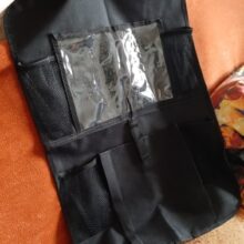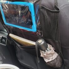 Our Hanging Back Seat Storage Bag is designed to perfectly hold your children’s storage needs securely in place. Tissue holder, snacks, headphones, bottles, crayons, umbrella, iPad (need an Ipad case). There is a place for almost everything! At the same time, it can be used as a dining table after putting the folding part down. This storage bag makes your passengers feel more convenient and comfortable.