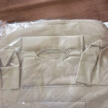 This seatback organizer/protector works great in my SUV as my kid kicks the back of the front seat a lot. It is easy to install and can hold a lot of things. The fabric is faux leather, looks good, and very easy to clean. Highly recommended!